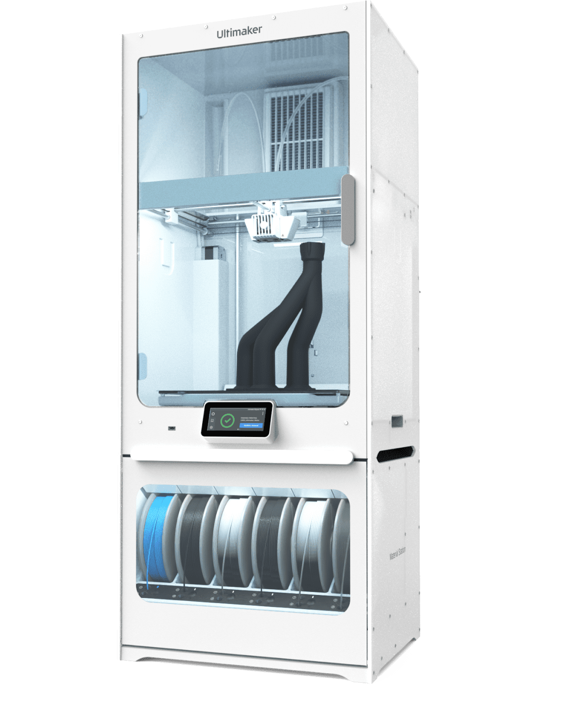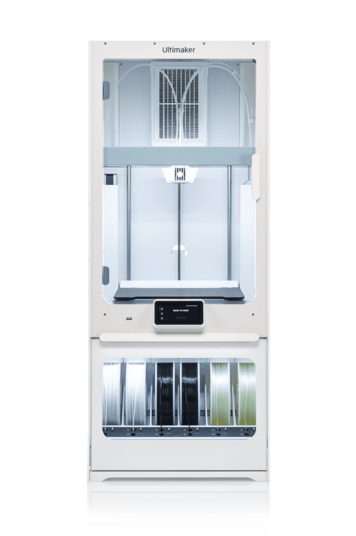 Transform the UltiMaker S7 into a manufacturing powerhouse. With 3x the material capacity. Automated filament handling. Humidity controlled storage
